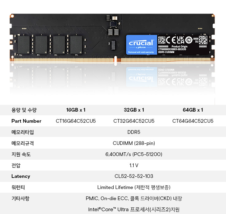 마이크론 Crucial DDR5-6400 CL52 CUDIMM 아스크텍 64GB